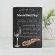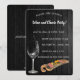 Cette invitation éditable présente un verre de vin versé et un plateau de charcuterie sur un fond en bois sombre. Les détails au recto sont modifiables, vous pouvez donc modifier les informations ainsi que le style, la taille et la couleur de la police. Il y a également un champ modifiable pour des informations supplémentaires au verso.