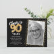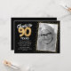 Célébrez le grand jalon de quatre-vingt-dix ans avec nos élégantes invitations à la fête d'anniversaire. Avec un arrière - plan noir tendance personnalisable, un spot photo personnel et des accents dorés, ces invitations laisseront une impression durable. Les détails du ballon en hélium doré apportent une touche de magie, tandis que le modèle de texte moderne de 90e anniversaire est facile à personnaliser sans effort. Parce que le style n'a pas de limite d'âge !