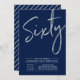Célébrez votre journée spéciale avec cette simple et élégante invitation à la fête du 60e anniversaire. Cette conception comporte un script de brosse "Sixty" avec une disposition propre sur un arrière - plan bleu marine. Vous pouvez customiser le texte et la couleur arrière - plan. D'autres conceptions et fournitures de fête sont disponibles à ma boutique BaraBomDesign.