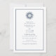Cartes d'invitation de mariage célestes bleues et blanches imprimées avec un élément de soleil et de lune bleu marine et blanc. Le soleil est souvent reconnu comme un symbole de force et de puissance masculines. La lune est associée à la féminité dans de nombreuses cultures, souvent sous la forme d'une déesse. Voici une belle invitation de mariage montrant la réunion de vos énergies le jour de votre mariage. L'invitation est réversible avec un design de papier agate bleu au dos.