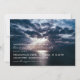 Un service commémoratif ou une invitation à célébrer la vie avec une photo du soleil se brisant à travers les nuages de pluie sur l'océan.