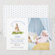 Cute hand painted watercolor rabbit in the garden 1st birthday boy invitation with photo,