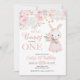 Celebrate your little girl with this "Some Bunny is Turning One" invitation. Featuring a sweet watercolor bunny holding tulips and soft pink floral roses. Perfect for a spring garden party or bunny-themed first birthday. Easily customize with your daughter's party details.