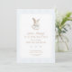 A classic vintage bunny design with soft blue bow detail and elegant neutral typography. Clean, timeless layout with a subtle stripe background—perfect for a boy’s first birthday party or a gender-neutral bunny celebration.