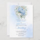 Set the tone for a stylish and unforgettable celebration with this watercolor blue and gold wedding invitation, designed around today’s most trendy wedding color palette. Featuring soft pastel, powder, light, and pale blue hydrangeas, paired with fresh eucalyptus greenery and elegant gold floral accents, this design captures modern romance with timeless appeal.