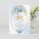 Invitation Sophisticated Dusty Blue Botanical 80th Birthday
