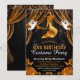 Invitation Sorcière et rideau noir & orange Anniversaire