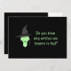 Une sorcière verte aux yeux jaunes et parfaite de Halloween grin demande : "Savez-vous pourquoi les sorcières utilisent les balais pour voler ? La réponse évidente : "Parce que les aspirateurs pèsent trop."