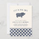 Accueillir un barbecue ou une fête d'anniversaire de rôti de porc ? Invités Invitations à "pig out" avec vous avec ces invitations de fête cool avec une illustration de porc de style vintage et "Let's pig out" arqué sur le dessus en lettres noires. Ajoutez les détails de votre événement sous les champs modèle fournis. Une bordure en fond plaid ajoute une touche rustique de finition.