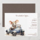 Elégante et amusante, ces mignonnes petites souris aquarelle conduisant une voiture bleue invitation d'anniversaire enfant est parfait pour votre petit. Le design comprend une mignonne souris aquarelle peinte à la main qui sourit alors qu'il est assis dans une voiture bleue et un tex qui peut être customisé pour répondre à vos besoins de planification de fête. Le dos est muni d'un motif à pois sur une couleur arrière - plan changeante.