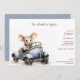 Elégante et amusante, ces mignonnes petites souris aquarelle conduisant une voiture bleue invitation d'anniversaire enfant est parfait pour votre petit. Le design comprend une mignonne souris aquarelle peinte à la main qui sourit alors qu'il est assis dans une voiture bleue et un tex qui peut être customisé pour répondre à vos besoins de planification de fête. Le dos est muni d'un motif à pois sur une couleur arrière - plan changeante.