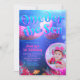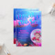 Cette invitation utilise le bleu et le rose comme palette de couleurs principale. La profondeur dans le design est prise en compte en faisant apparaître les poissons très éloignés du point de vue principal. Des effets d'éclairage sont utilisés notamment sur la queue de sirène, pour en faire la star du design