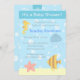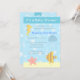 Conception de bande dessinée des animaux sous-marins mignons et colorés se composant de l'hippocampe jaune, des méduses bleues, des poissons rayés et des étoiles de mer roses. Faites votre petit baby shower de bébé ou de fille extra spécial avec cette carte sous-marine adorable d'invitation de partie de douche de thème d'animaux qui va impressionner vos invités.
