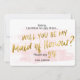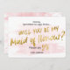 Un joli blush rose et un faux papier doré Serez-vous ma carte Maid of Honor. Une jolie façon de demander à vos filles