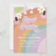 Spa Party Super Arc-en-ciel invitation d'anniversaire avec marguerites, vernis à ongles et concombres.