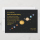 Une invitation colorée représentant huit planètes entourées d'espace noir. Une belle invitation à la fête d'anniversaire pour votre astronome en herbe.La carte est facile à customiser avec votre libellé, police, couleur de police et choix de six types de papier.