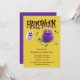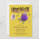 Cette adorable invitation d'Halloween est parfaite pour une soirée costumée spooktaculaire pour enfants. L'arrière - plan jaune vif donne un ton gai, idéal pour les fêtes des enfants. Le texte ludique "HALLOWEEN" en haut attire immédiatement l'oeil, tandis qu'un fantôme mignon et souriant ajoute une touche amicale de l'effroi. Un chou violet plein de bonbons colorés prend le devant de la scène, entouré de douceurs éparses, séduisant l'amour des enfants pour les friandises. Des étoiles noires parsemées sur l'image rehaussent l'atmosphère magique d'Halloween. Les détails de l'invitation sont clairement présentés, invitant les jeunes invités à un "SPOOKTACULAR COSTUME PARTY". Avec ses éléments d'Halloween amusants et ses images mignonnes, cette invitation va sûrement exciter les enfants pour le prochain rassemblement fantomatique, les encourageant à ne pas oublier leurs costumes pour une nuit de rasage ou de traitement amusant.