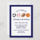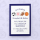 Invitation de fête d'anniversaire de sport pour enfants avec football ball, baseball, football et basket-ball