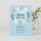 A spring-theme invitation featuring daisies, wild flowers and ferns against a light blue background. Shown as a baby shower invitation, it's well-suited for birthday and other spring celebrations. (Image by Freepik). The card is easy to customize with your wording, font and font color. Not exactly what you're looking for? All our products can be custom designed to meet your needs at no extra charge. Simply contact us at askcottonlamb@gmail.com. Coordinating products available at your request at no additional charge.