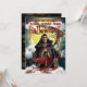 Un squelette Éffrayant rit de l'escroquerie dans sa main osseuse et de nombreux crânes effrayants crient au dos de notre Invitation d'Halloween.