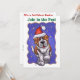 Animaux Parade Fête Saint Bernard Chien Noël Invitations présentez notre art original d'un mignon chien marron et blanc St. Bernard décoré pour les vacances avec un chapeau rouge vif du Père Noël sur la tête sur le devant et une couronne de saint vert festif sur son cul avec un joyeux arc rouge sur le dos avec toutes vos informations de fête. Notre amusant chien de St. Bernard se dresse dans un paysage enneigé avec un ciel étoilé texturé bleu nuit peint par Traci Van Wagoner. Rejoignez la Parade des animaux et invitation votre chien amoureux amis à votre fête de Noël avec notre jouet puppé habillé pour les vacances. Malheur !