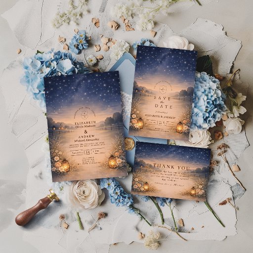 Invitation Starry Night Rustic Meadow Wedding