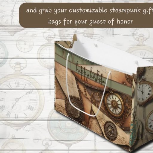 Customisez ce collage de vos articles préférés à thème steampunk. L'avant de l'invitation de la fête comprend un chapeau en cuivre et en aqua, des lunettes en steampunk cachées au coin inférieur gauche de l'invitation, ainsi qu'une moto à vapeur et une horloge en boussole dorée. Au fond de l'invitation, aqua, rayures brunes et vertes.