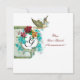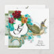 Design floral élégant, drôle de style vintage avec un bébé et cigogne volant parmi les belles roses, roses rouges, fleurs de printemps bleu turquoise de Bulgan Lumini (c).