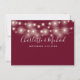 Un élégant mariage bordeaux détaille la carte d'information de boîtier avec de jolis lampes à cordes. Personnalisez avec vos détails spéciaux d'événement définis dans la typographie élégante avec vos noms et date mariage au verso. Conçu par Thisisnotme©