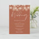 This elegant script terracotta wedding invitation, featuring pretty string lights, can be personalized with your information in chic typography with your wedding website details and your QR code on the reverse. Designed by Thisisnotme©
