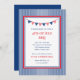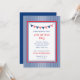 Ces élégantes invitations à la fête de l'Indépendance rouge blanc et bleu présentent un arrière - plan rayé bleu et blanc moderne et un cadre rouge et bleu. Le texte dit "4 juillet barbecue", mais vous pouvez facilement changer le libellé pour refléter votre propre type de patriotisme de célébration du 4 juillet. Il y a aussi une bannière illustrée avec les étoiles et les rayures.