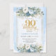 Invitation Stunning pastel blue gold frame 90th birthday