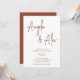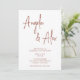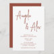 Script de style manuscrit monoline moderne sur une conception de faire-part de mariage d'information. Vous pourrez customiser la taille des noms de mariée et de mariée selon vos besoins. Faire-part de mariage de couleur élégant mais solide en terre cuite et blanc. Customisez la couleur et la couleur de police de l'arrière - plan pour correspondre à votre palette de mariages. Modifiez la conception de texte personnalisée.