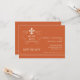 Annoncez vos plans de mariage à vos amis et à votre famille avec ces cartes Enregistrez la Date de style élégant rétro Fleur de Lis. La carte présente un design de symbole Fleur de Lis élégant avec de la place pour ajouter votre date de mariage. La carte indique "enregistrez la date" dans un style rétro avec une impression blanc cassé. Personnalisez avec vos noms et date de mariage. Affiché ici sur un fond orange brûlé.