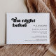 La veille... Assurez-vous que tout est parfait pour le grand jour; recevez des invitations modernes pour votre dîner de répétition mariage. Un thème rétro chic : adoptez ce design typographique légèrement vintage et élégant pour votre papeterie mariage, avec un thème classique noir et blanc. Texte, couleurs et arrière - plans personnalisables.