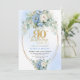 Invitation Stylish Blue Peony Gold Frame 90th Birthday Invite
