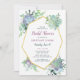 Cette invitation élégante et à la mode de Fête de la mariée est parfaite pour un événement avec un thème succulent ou floral. Elle comporte un cadre irrégulier avec une texture de parties scintillantes et des illustrations des succulents aux nuances molles pour un effet chic. La conception est élégante et parfaite pour un nuptiale avec le grand sens du style.