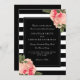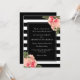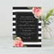 Mariage rayé noir et blanc moderne avec corail et fleurs roses. Créé par Colorful Designs Inc. Copyright 2016