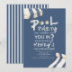 Make a splash at your next pool party with this nautical-themed invitation! Featuring bold blue and white stripes reminiscent of seaside umbrellas, this design is perfect for any summer celebration. The playful "You In?" headline and space for all your essential party details, including the guest of honor's name, make it easy to invite your friends. It's an ideal way to announce a 13th birthday bash or any poolside get-together. Get ready for a day of fun in the sun, with pizza, swimming, and cake!