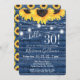 Tournesol fête de 30e anniversaire 'bonjour 30!' avec lumières de bocal en bois bleu marine et belle impression que vous pouvez customiser avec toutes les informations de votre fête d'anniversaire.