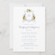 Sunflower Blue Hydrangea Greenery White Monogram Crest Faire-part de mariage. Aquarelle Bleu Dusty Crest Mariage. Elégant blanc Floral Hydrangea Faire-part de mariage de verdure