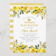 Invitations Baptême imprimées sur mesure et abordables pour les filles. Ce design d'été frais a une bordure florale aquarelle avec des fleurs jaune vif et de la verdure. Personnalisez le modèle avec les détails de votre événement. Reverse side a un motif rayé jaune peint ou utilisez l'espace pour ajouter du texte et des photos supplémentaires. Cliquez sur Customiser pour choisir n'importe quelle couleur arrière - plan et modifier les polices et les couleurs du texte pour créer une invitation Baptême ou Christening unique pour votre fille.