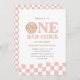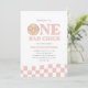 Célébrez vos filles super dès le premier anniversaire de fête avec notre invitation d'anniversaire "ONE RAD CHICK" à damiers rose ludique. Ce design présente un visage heureux facile à aimer avec des lunettes de signe de paix et des motifs ondulés roses poussiéreux à damiers.