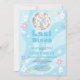 Faites-vous plaisir avec notre Super Retro Disco Ball Floral Dernier Disco Bachelorette Invitation! C'est une soirée discothèque avec une carte et la meilleure façon de se balader dans votre week-end de bachelorette ! Doté d'une jolie illustration rétro avec boule disco des années 80, de petites fleurs hippies et étoiles blanches avec super rétro Dernier Disco sur pastel retro blue. La soirée discothèque des années 80 !