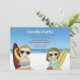 Un beau cadre de plage avec un petit garçon et une fille surfeurs et leurs planches de surf. Chacun porte des lunettes de soleil et se rafraîchit dans les mains. Nichés à leurs pieds, une petite étoile de mer et un crabe. Une excellente invitation estivale.L'invitation est facile à customiser avec votre libellé, police, couleur de police et choix de six types de papier.