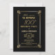 Une invitation moderne en noir et or surprise 100ème anniversaire de fête.