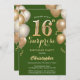 Invitation Surprise 16e anniversaire Ballons vert et or