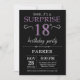 Invitation surprise 18e anniversaire avec Arrière - plan de Parties scintillant noir et violet. Tableau de bord. Anniversaire adulte. Hommes ou femmes Anniversaire Invitation. Quel que soit l'âge.