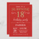 Invitation surprise 18e anniversaire avec Arrière - plan de Parties scintillant Rouge et Or. Anniversaire adulte. Hommes ou femmes Anniversaire Invitation. Quel que soit l'âge.
