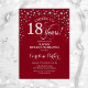 Invitation surprise 18ème anniversaire de fête. Design élégant en rouge foncé et faux argent parties scintillant. Fonctionne la police de script et les confettis de diamants. Salutations à 18 ans ! Message-moi si vous avez besoin d'une personnalisation plus poussée.